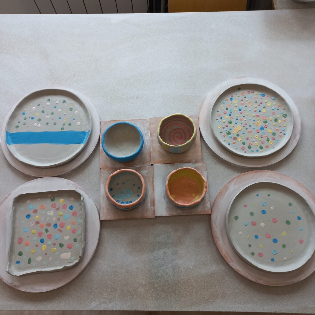 Stage parent-enfant de 2h à 60 euros par binôme : Minimum 2 binômes soit 4 personnes (réalisation et décor d’une petite assiette, d’un bol, en grès blanc.)