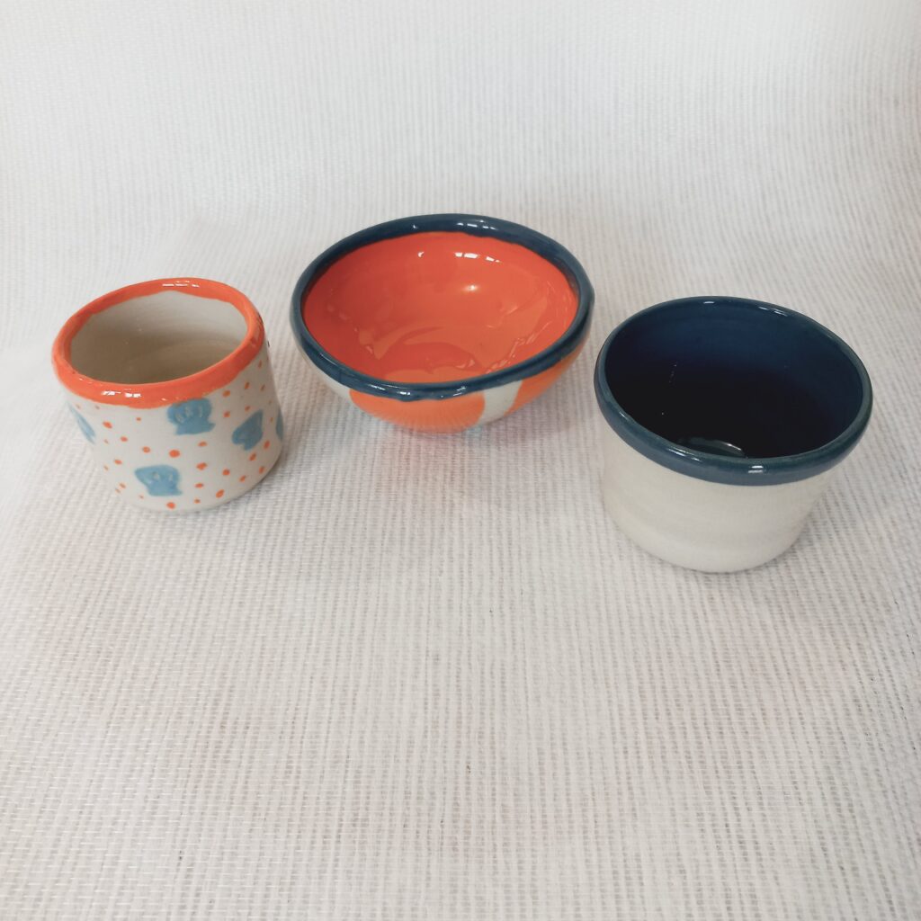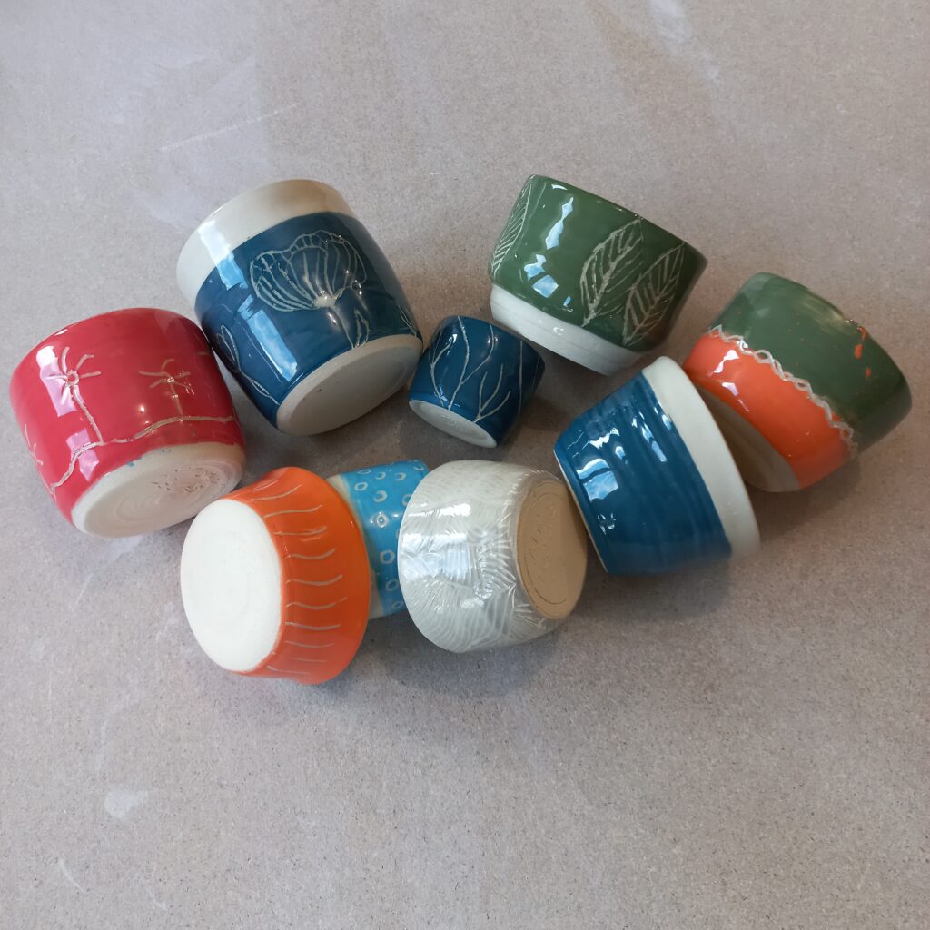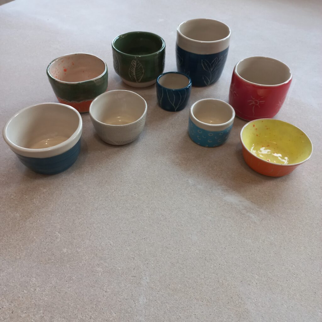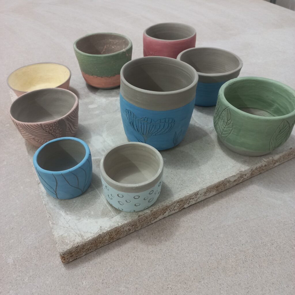 Ce qui est compris dans le tarif: la terre, les 2 cuissons (1000° et 1280 °), les engobes (terre liquide colorée) et l’émaillage (email transparent) dont je me charge pour vous à la suite de l’atelier, et le matériel à disposition à l’atelier. Vous pourrez venir récupérer vos pièces environ 1 mois après l’atelier.